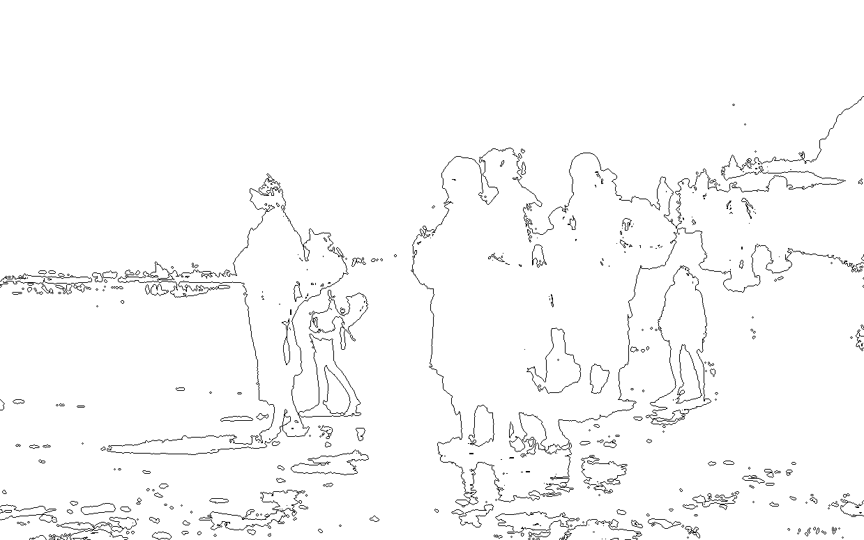 Or what if he had used extreme value contrast, emphasizing only the placement of people's shapes?
